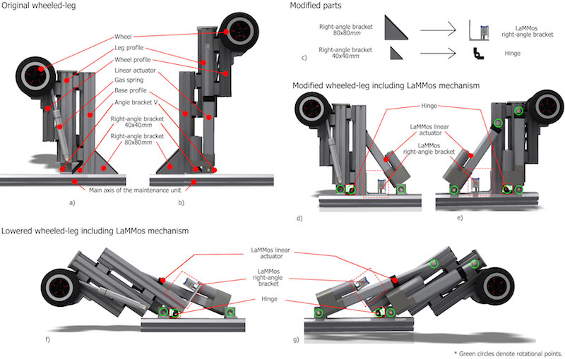 Original and modified wheeled-leg with integrated LaMMos mechanism.