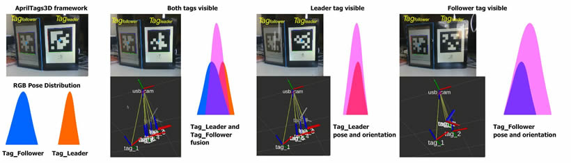 We integrated AprilTags3D with a couple of markers on the docking station. The Tagleader is set to replace the printed version with position (Tx,Ty,Tz), while the Tagfollower is connected to the Tagleader on the Z − axis and rotated 10◦ on yaw.
