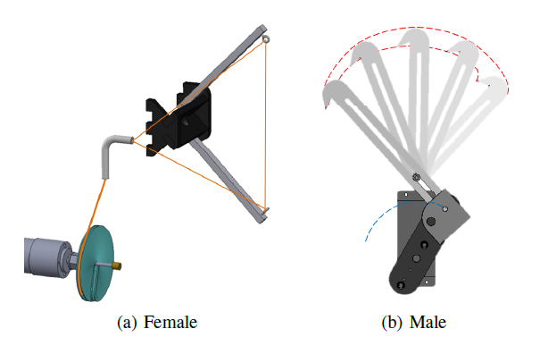 Docking mechanisms. (a) Cable fully extended (female).(b) Hook (male).® O'Hara