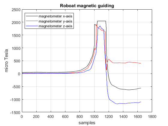 Magnetic field when roboat moves towards the field, from the front (left) and from the side (right).