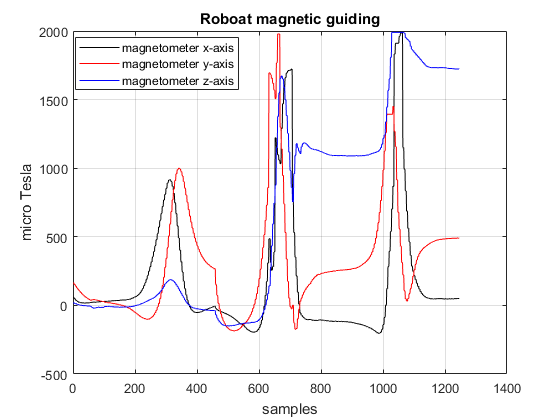On the docks there are passive elements with only a permanent magnet as device to help direct the roboat for latching. In this configuration, the active element (on-board the roboat) activates its 3D magnetometer to find the position that leads to the passive element on the dock. To do so, the magnetometer is configured as follows: The x and y axis corners of the magnetometer are pointing outwards so when reaching to the magnetic field of the permanent magnet in the passive part, the position is related to a 2D plane and corrections can be made by the guiding controller. In other words, it is able to know the position of the magnet, whether it is located on the left or right of the pin.