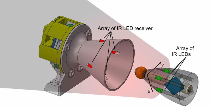 Infrared guiding 3D model (left). Guiding system based on infrared (right).