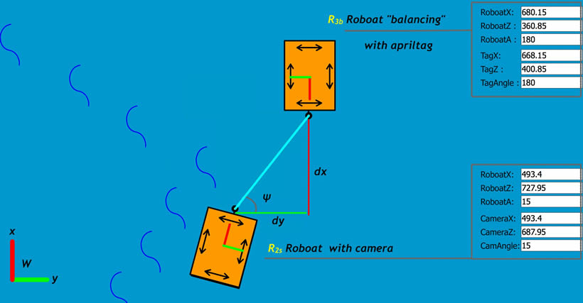 In our approach, one robotic platform waits in a position, similar to a ”balancing” robot, becoming a pseudo-docking staion, while the other roboat performs the movements for latching.