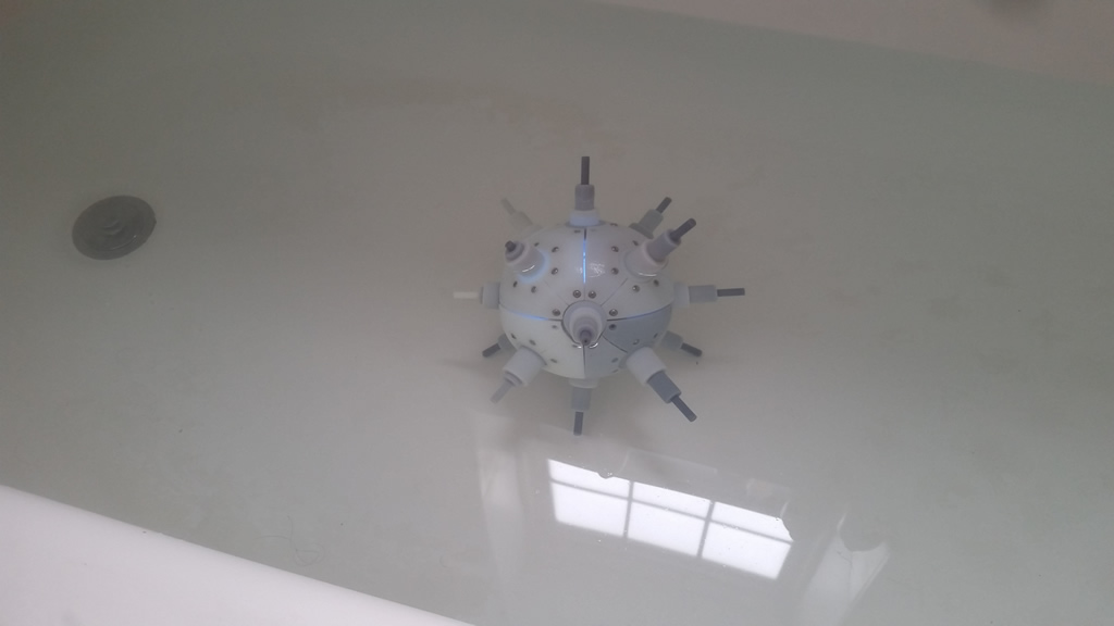 The particle robot is inspired by two simple organisms which are very similar but exist at different scales: in the macro-organism-scale, the biological sea urchins and from the micro-organism-scale by the rotaviruses, together with spherical mobile robots