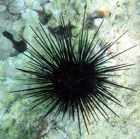 Sea urchins have a round shaped body and with long spines that come off it. The spines of the sea urchin are used for multiple purposes, such as protection, to move about, and to trap food particles that are floating around in the water. Sea urchins are animals with little mobility as they move slowly with their movable spines and typically range in size from 3 to 10cm.