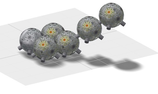 In a realistic setup, the particle robot must be able to submerge and control its position by rotating with the inner spherical mobile robot, together with the spines for balancing purposes underwater. Further, the spines of the robot must integrate an electromagnet or additional mechanisms for latching and connecting to other particle robots.